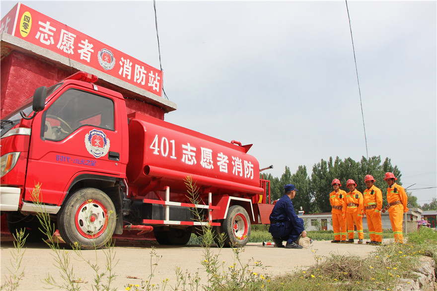 給張維能印象比較深的是6月24日,附近小營房村一民房著火�!爱斕煜挛�,接到電話后,我們立即開著“消防車”去救援,因為是隔壁村,離的比較近,10幾分鐘就到了現(xiàn)場。當時火勢仍在蔓延,我們立刻噴水滅火,有效地阻止了火勢蔓延,也為消防隊撲滅火災營造了良好救援條件,盡可能地減小了火災帶來了損失,”張維能信心滿滿的說。