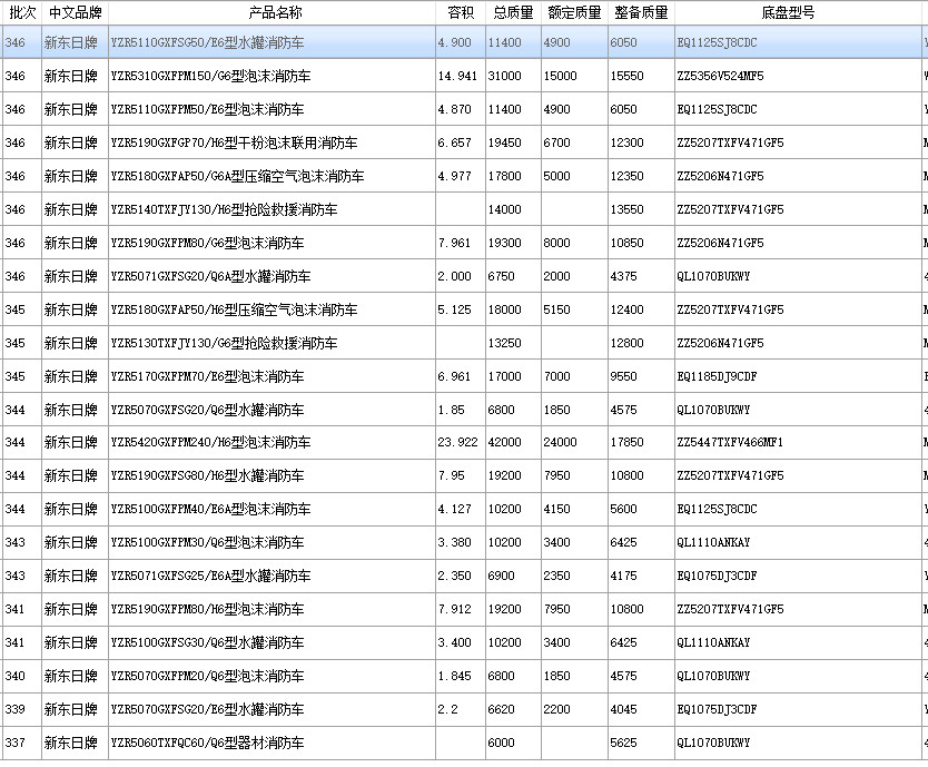 我公司九款消防車在《道路機動車輛生產(chǎn)企業(yè)及產(chǎn)品公告》(第348批)公示