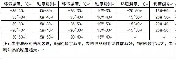 不同環(huán)境溫度適應的機油粘度級別